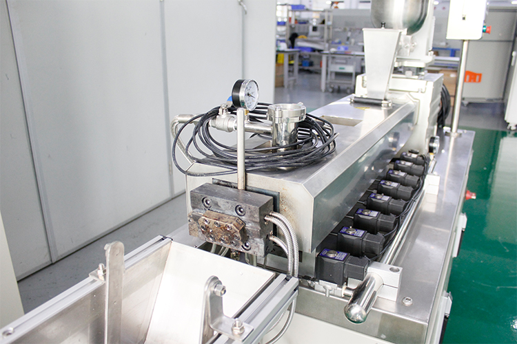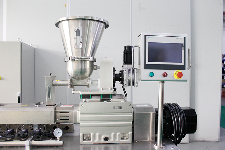 剖分式小型精密三螺杆挤出造粒线由剖分式小型精密三螺杆挤出机、换网器、造粒模具、冷却水槽、风干装置以及小型精密切粒机组成。剖分式小型精密三螺杆挤出机采用剖分式机筒,采用平行啮合同向三结构螺杆,可根据物料特性对螺纹元件进行重新组合,实现对不同特性物料的混炼,提高混合混炼效果。主要用于橡塑和工程树脂的填充、共混、改性、增加、氯化、聚丙烯和高吸水性树脂的加工。