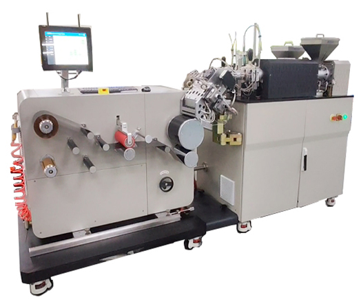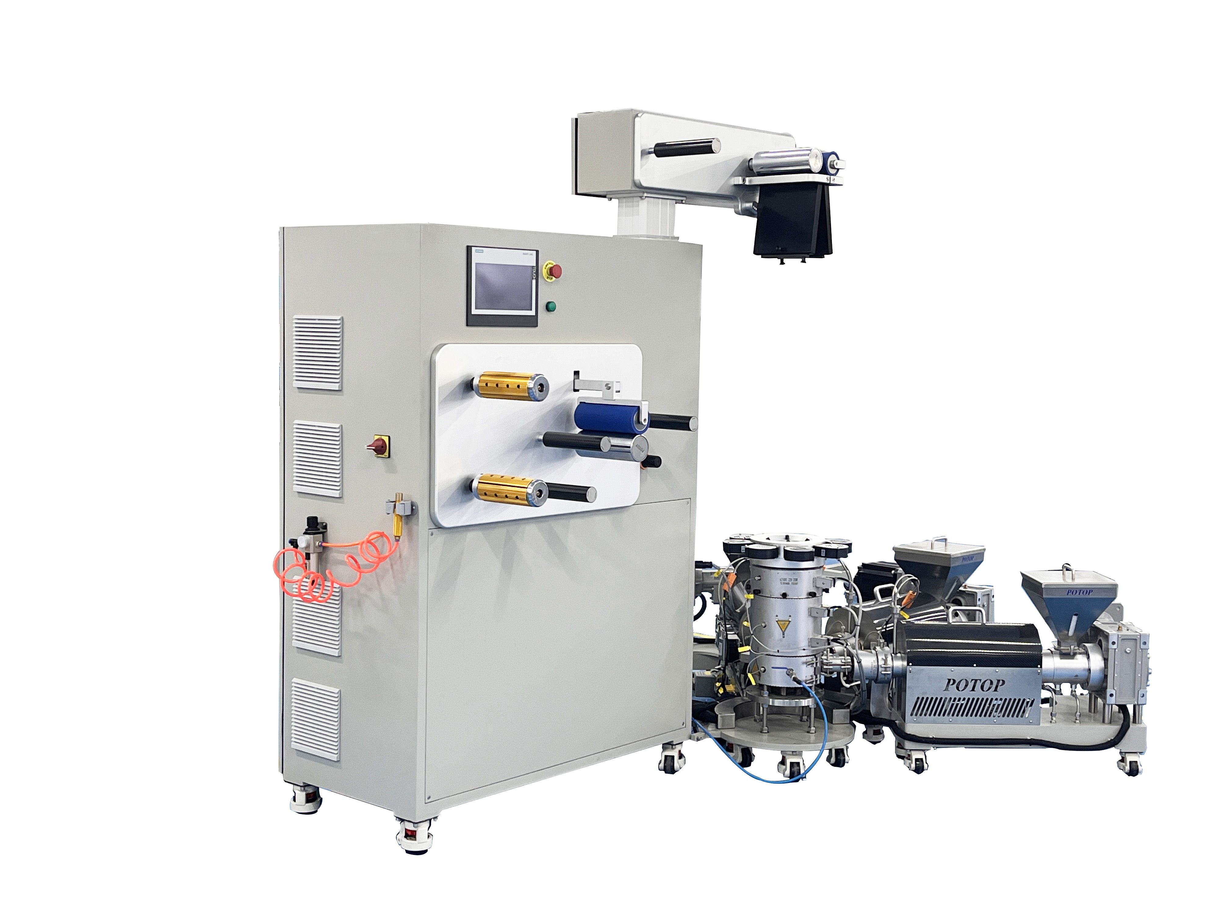 桌面小型精密挤出流延吹膜一体机是由小型精密单螺杆挤出机、换网器系统、流延系统、吹膜系统、牵引系统、收卷系统、收边系统以及测控系统等组成,可实现高分子挤出、流延、吹膜、牵引、裁边、收卷等功能。